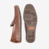 Ele possui frente do cabedal costurado a mão, solado de borracha com uma pequena faixa na cor tamarindo/ocre e bico arredondado. Também conta com palmilha macia e detalhe em metal com o logo da marca.