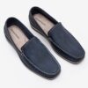 O Mocassim Denim Flow é confeccionado em couro na cor Navy. Possui detalhe sobre o cabedal que simula um couro entrelaçado, parte frontal costurada a mão, palmilha fixa ao calçado e bico arredondado.